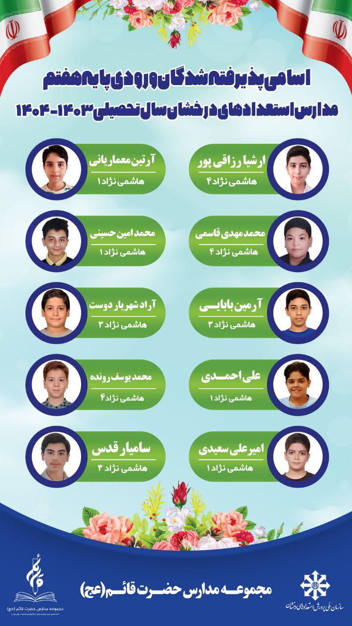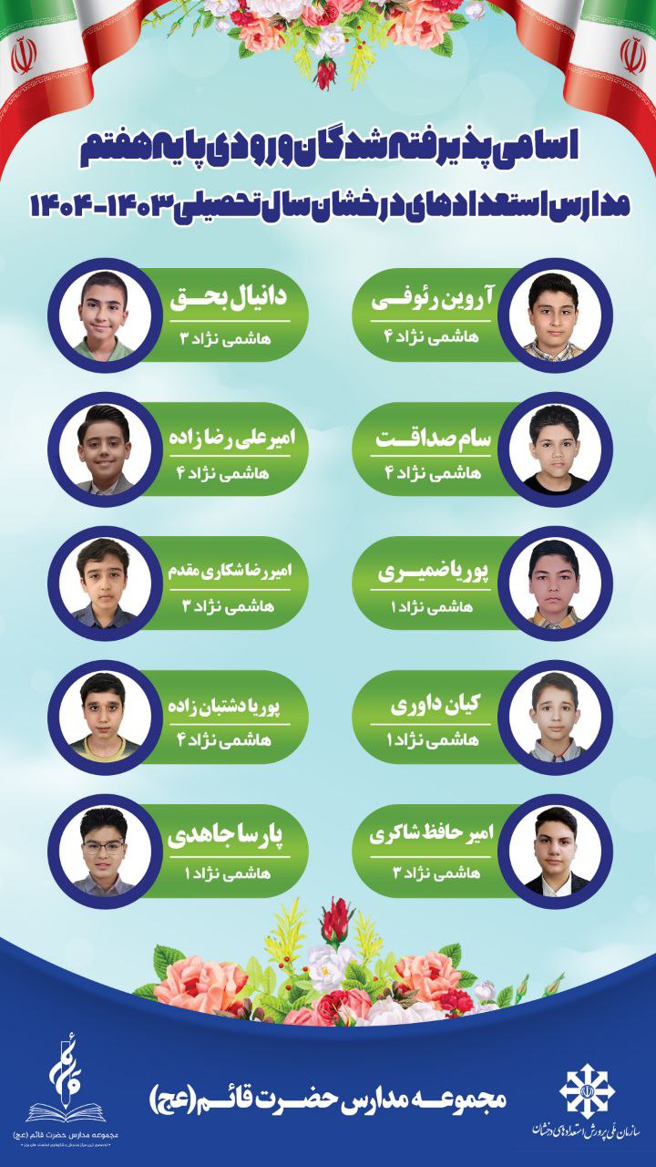 🎉 اسامی پذیرفته شدگان مدارس استعدادهای درخشان سال تحصیلی 1404-1403